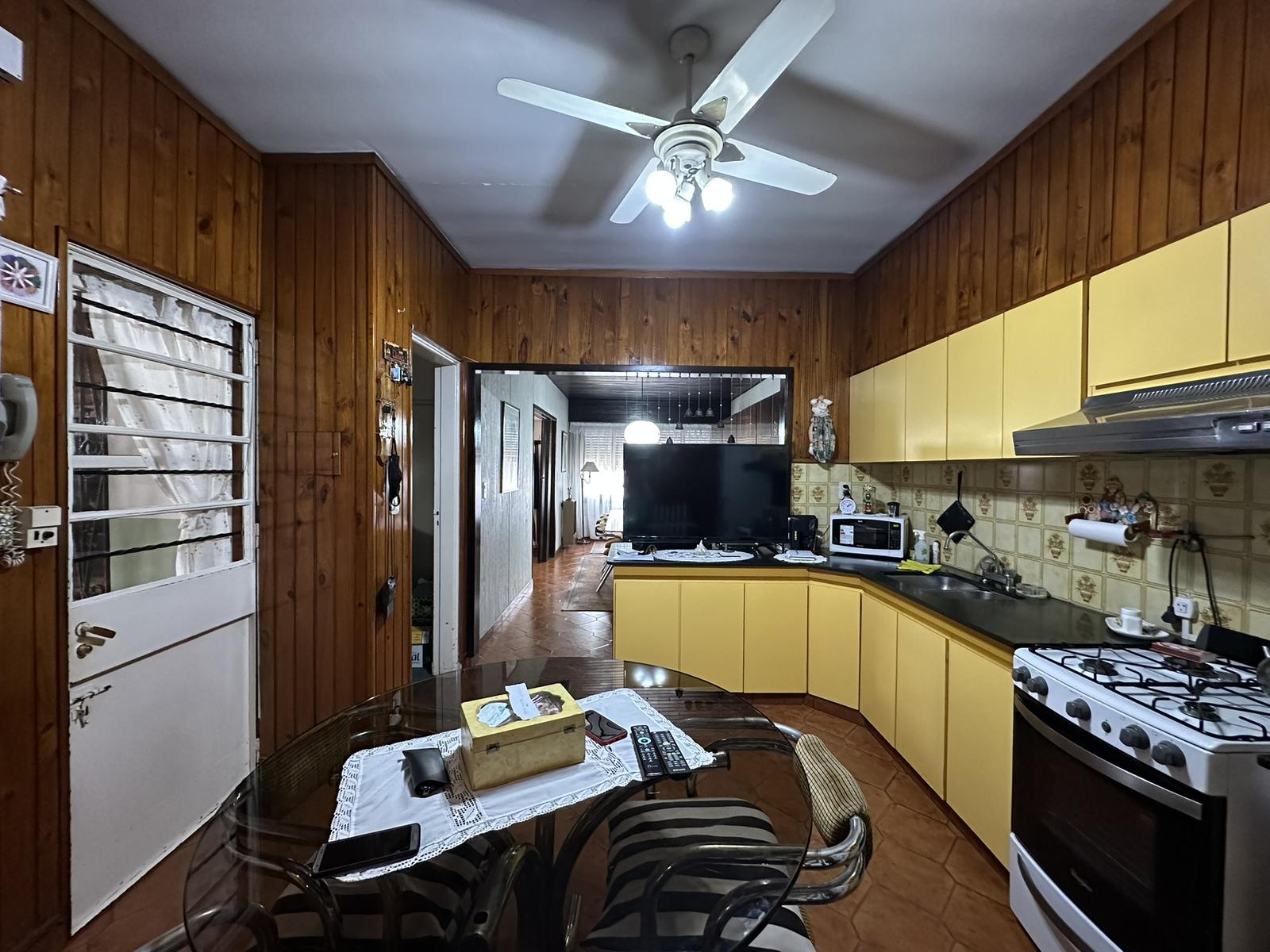 Porch al frente, living de ingreso, amplio comedor con cocina integrada, 3 dormitorios, baño, lavadero y amplio fondo libre con quincho, verde y pileta